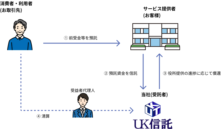 お客様が提供されるサービスの利用者が支払う前払金・保証金を信託で管理。倒産隔離機能により、委託者の経営リスクから資金を完全に保護します。